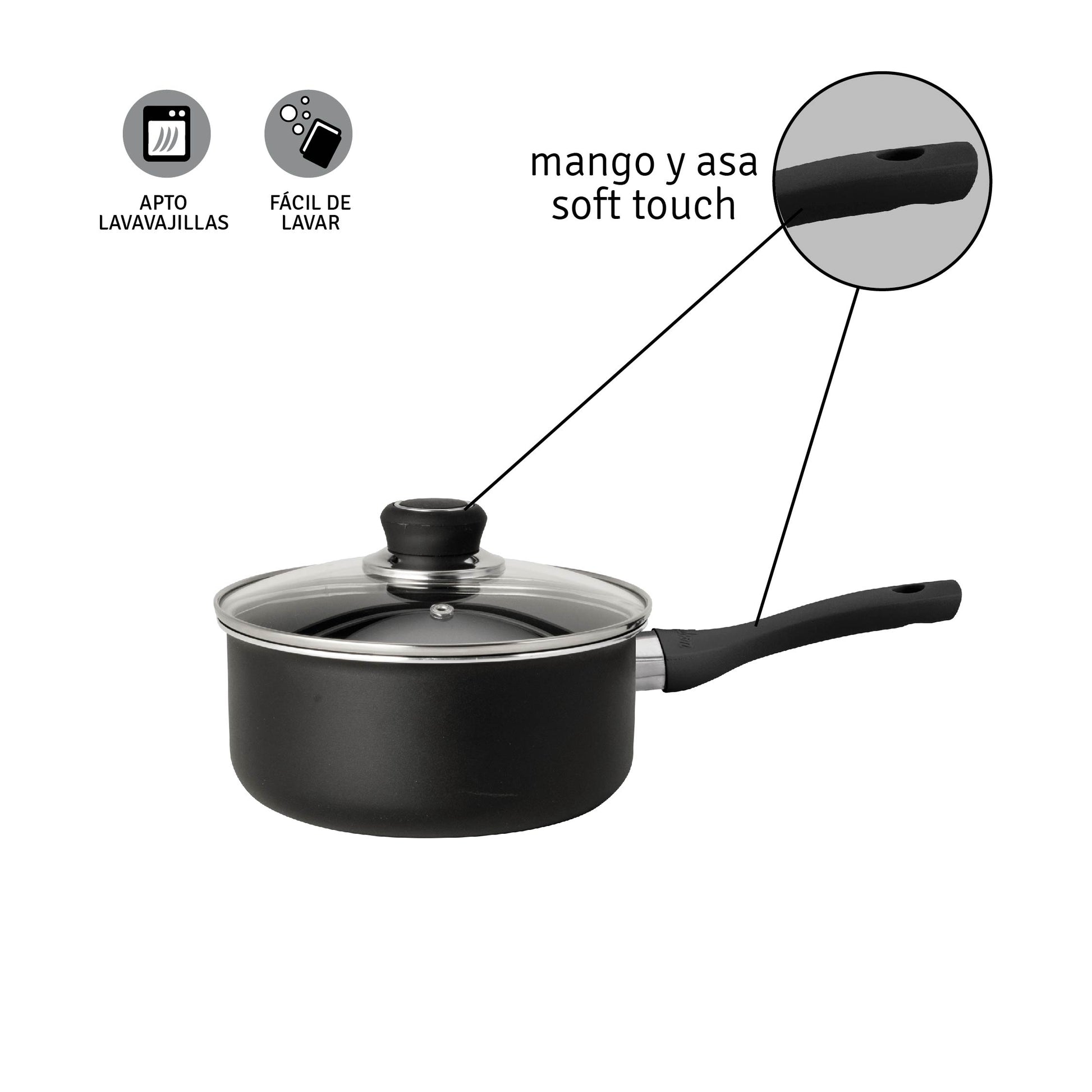 Cacerola Antiadherente Negro 18 Cm Aluminio