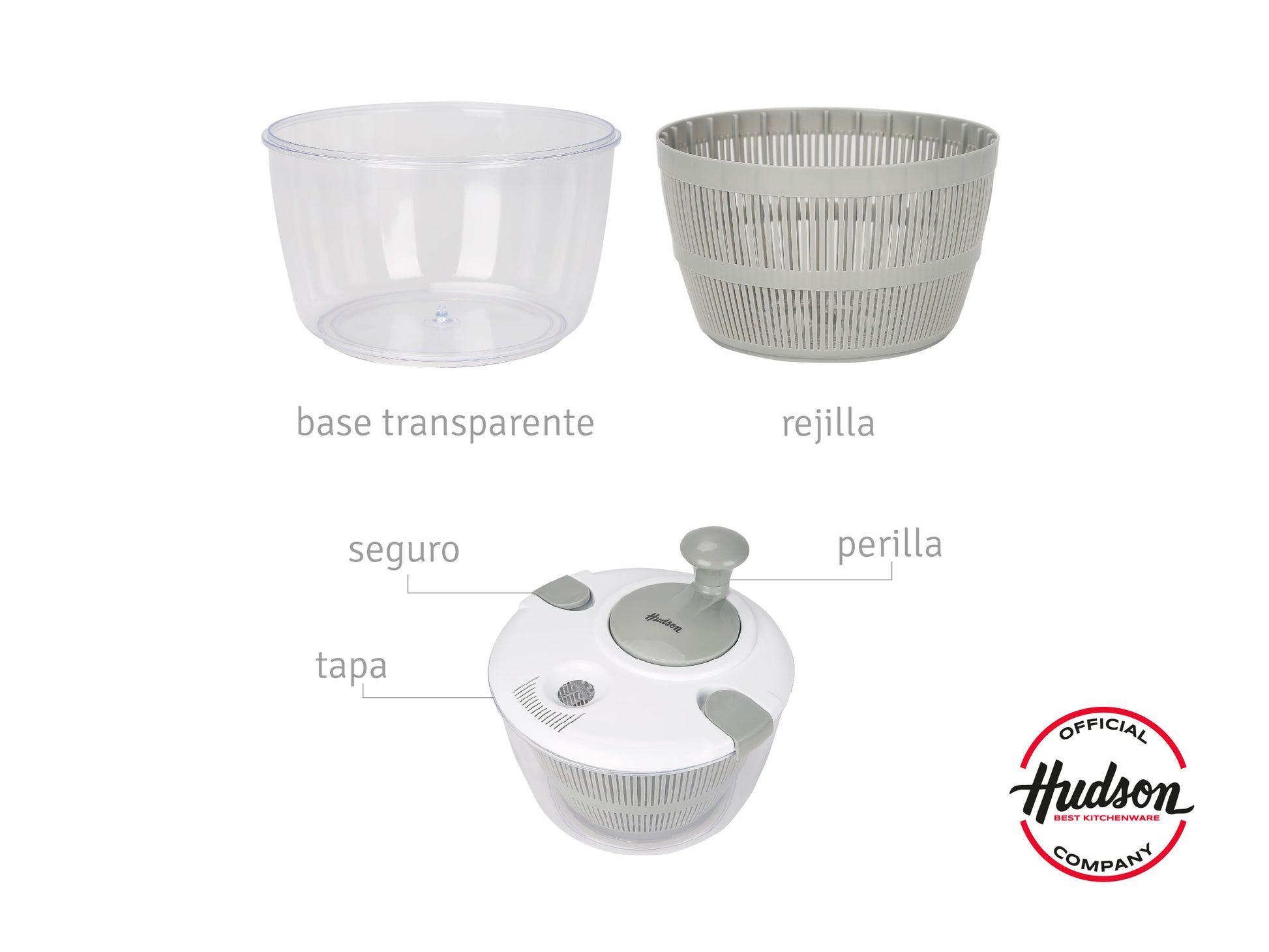 Color: recipiente transparente, colador gris, tapa blanca. Antideslizante