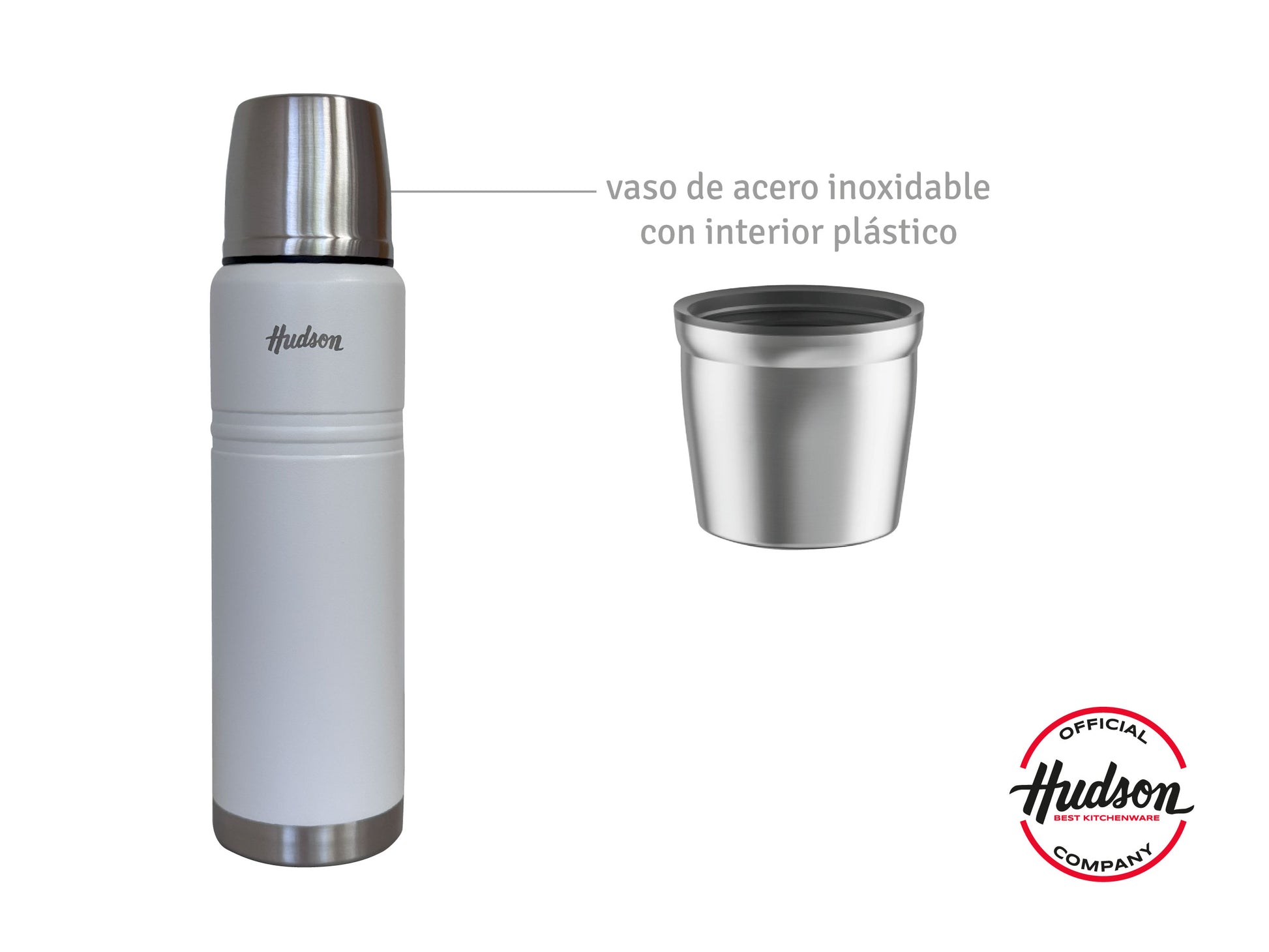 Fabricado con acero inoxidable tanto en su interior como en su exterior, garantiza durabilidad y resistencia. Su diseño elegante en color blanco se adapta a cualquier estilo, convirtiéndolo en un accesorio atractivo y práctico para tus actividades diarias.